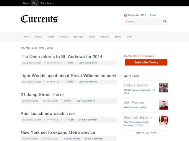 Currents WordPress Theme By WooThemes, Theme Type: Magazine, Minimal, News , free trial: available