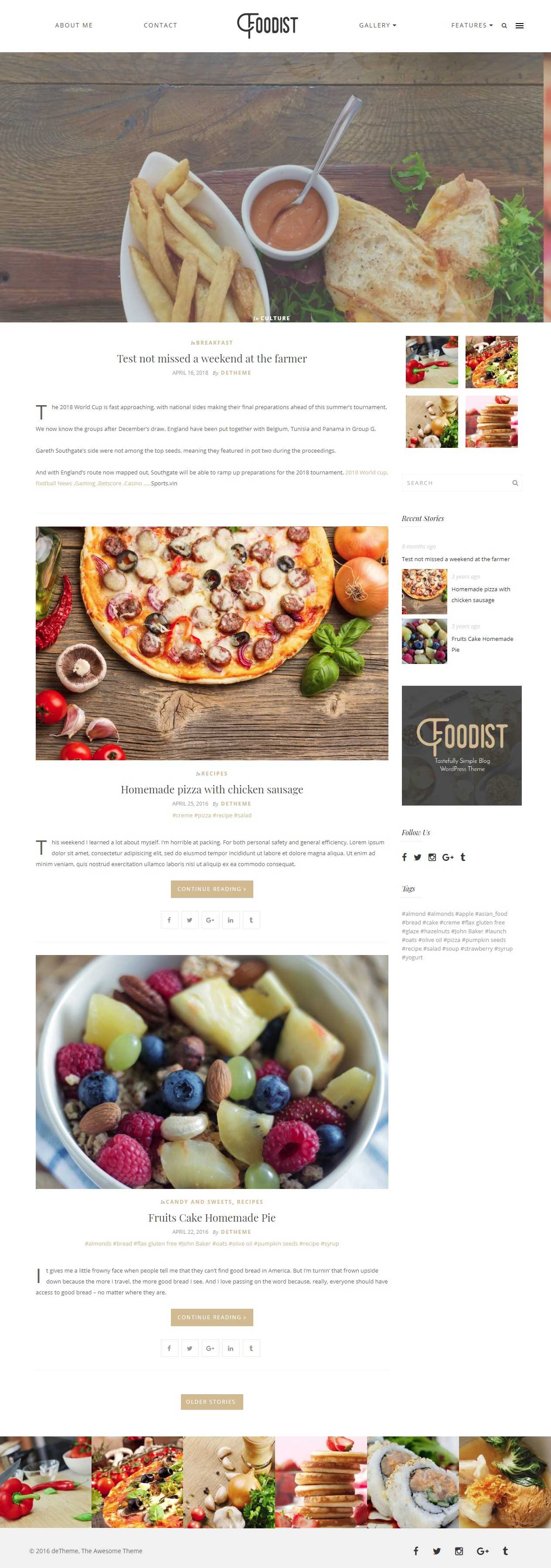 Foodist WordPress Theme By ThemeForest, Theme Type: Blogging, Food / Restaurant, Magazine , free trial: available