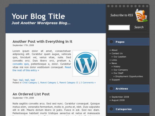 Navy Spiral is a notebook-inspired theme with cool blues and grays, clean lines, and subtle design cues to let your writing pop! No matter where writing inspiration takes you, you’re online notebook will always be there to share your thoughts and stories. Widget-ready, gravatar-enabled, and set to download.