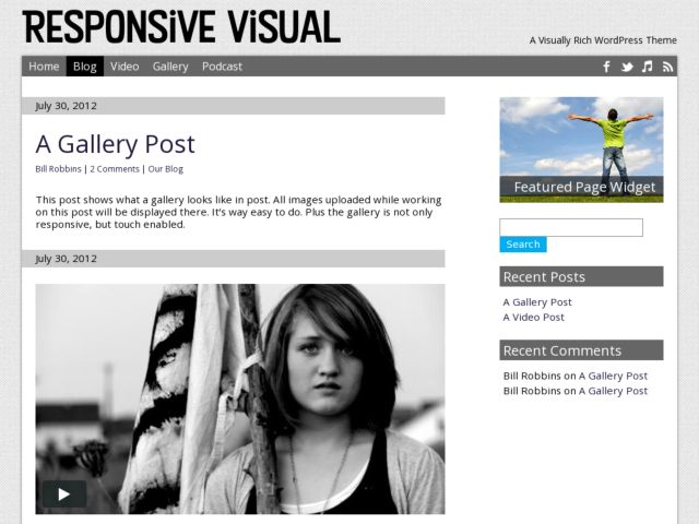 Responsive Visual is a unique WordPress theme design for a simple yet visually enticing website. The home page features a slideshow that supports both images and videos, and you can also add slideshows to your posts and pages. You can show you photo galleries and videos in a unique content panel. It has built in MailChimp support, staff section, theme options panel and more. The theme also has a responsive design so will automatically adjust to look good on all screen sizes and mobile devices.