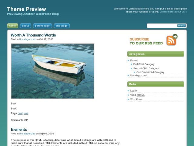 Vistalicious WordPress Theme By WordPress.org, free trial: available